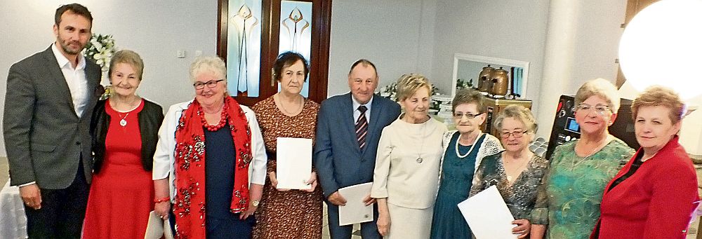 Przed licznym audytorium uroczyście podziękowano prezesom: Halinie Haliniak ze Skrzynek, Barbarze Opackiej z Inowłodza i Markowi Muskale z Niewiadowa za lata kierowania pracami kół w swoich miejscowościach. Wymienionych, którzy ze względu na stan zdrowia przekazali piastowane dotychczas funkcje młodszym, uhonorowano zegarkami z imienną dedykacją i dyplomami z podziękowaniami.