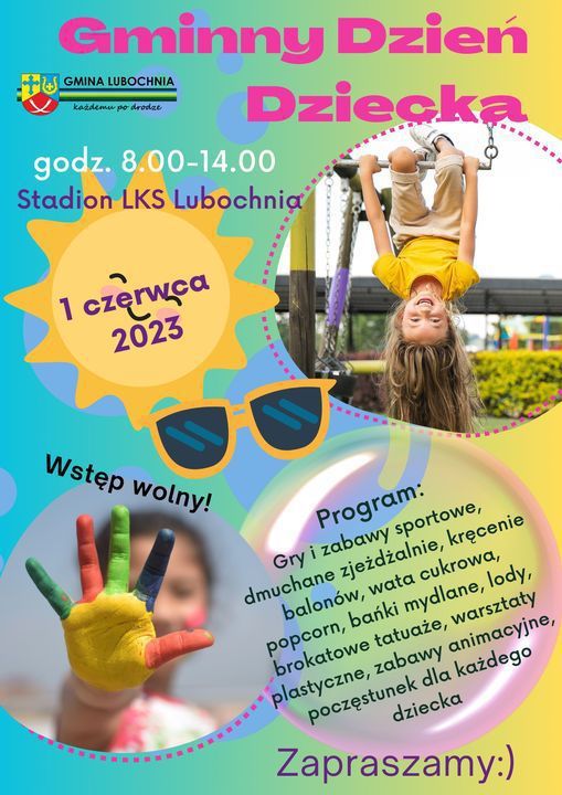 Gminny Dzień Dziecka odbędzie się 1 czerwca w godz. 8.00-14.00 na stadionie LKS Lubochnia.