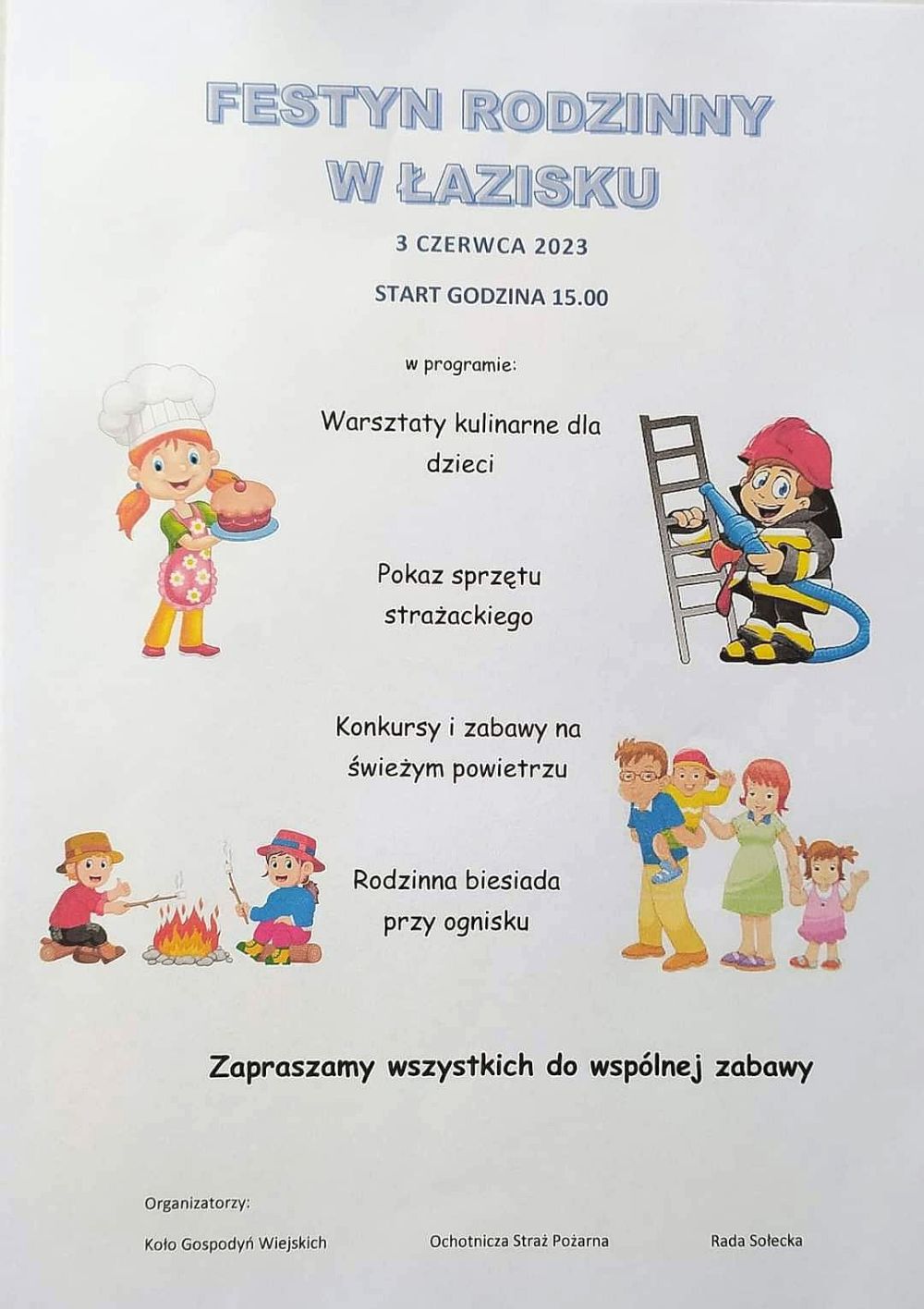 W programie przewidziane są: konkursy i zabawy na świeżym powietrzu, warsztaty kulinarne dla dzieci, pokaz sprzętu strażackiego oraz rodzinna biesiada przy ognisku. Początek zaplanowany jest na godz. 15.00. Zapraszają miejscowe: Koło Gospodyń Wiejskich, Ochotnicza Straż Pożarna i Rada Sołecka.
