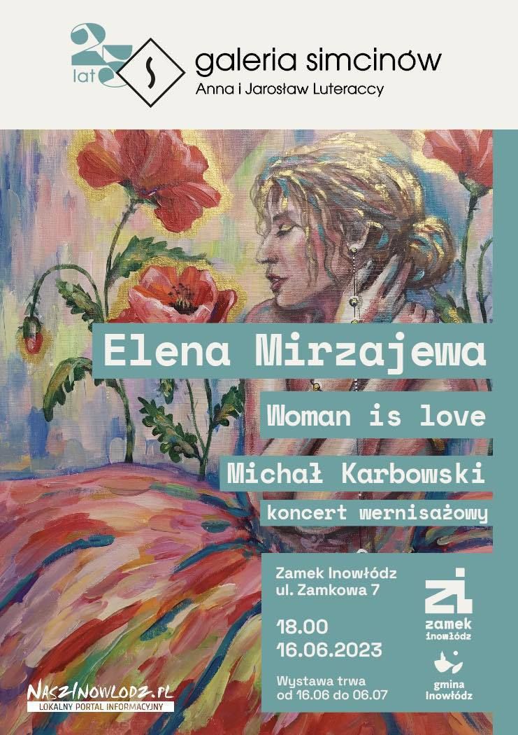 Na wystawie pt. "Woman is love" (Kobieta jest miłością) w Zamku w Inowłodzu swoje najnowsze grafiki i rysunki zaprezentuje Elena Mirzajewa. Wernisażowi, zaplanowanemu na piątek, 16 czerwca na godz. 18.00, towarzyszyć będzie recital gitarowy "Stany skupienia" Michała Karbowskiego.