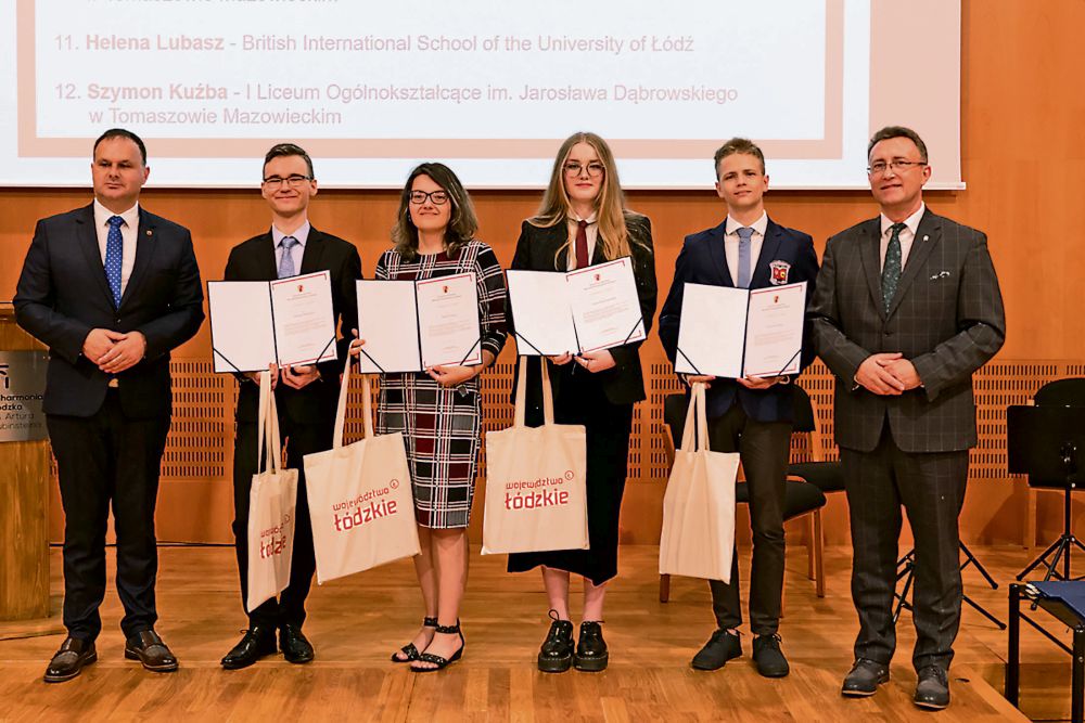 Wyróżnienia najbardziej utalentowanej młodzieży przyznano po raz 17. W sumie w tym roku nagrodzono nimi 48 osób, w tym 25 uczniów szkół ponadpodstawowych i 23 studentów uczelni w regionie. Laureaci odebrali listy gratulacyjne podczas uroczystości w Filharmonii Łódzkiej im. Artura Rubinsteina w Łodzi w poniedziałek, 19 czerwca. Obojgu naszym licealistom przyznano stypendia III stopnia w kwocie 2,5 tys. zł brutto.