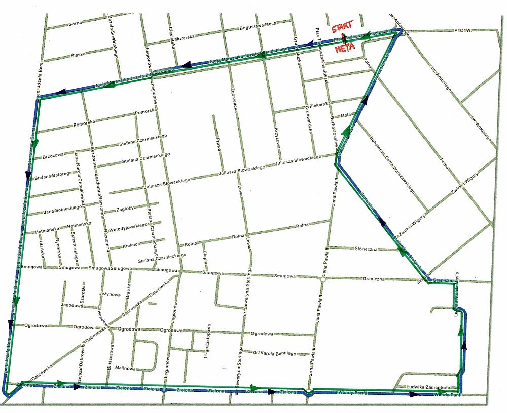 Start i meta imprezy usytuowane zostaną na placu Kościuszki. Do pokonania będą dwie 5-kilometrowe pętle. Nastąpi zatem istotna zmiana trasy, bo w ostatnich latach była jedna, dziesięciokilometrowa pętla, wiodąca aż pod Groty Nagórzyckie. Teraz po starcie zawodnicy pobiegną aleją Piłsudskiego, skręcą w lewo w ulicę Bema, a następnie będzie długa prosta ulicami Zieloną i Wandy Panfil. Powrót do centrum ulicami: Maya, Graniczną, Stolarską i Jerozolimską. Pomiar czasu dokonywany będzie elektronicznie (chipy). Start biegu zaplanowany jest na godz. 9.40. Obowiązuje dwugodzinny limit czasu.