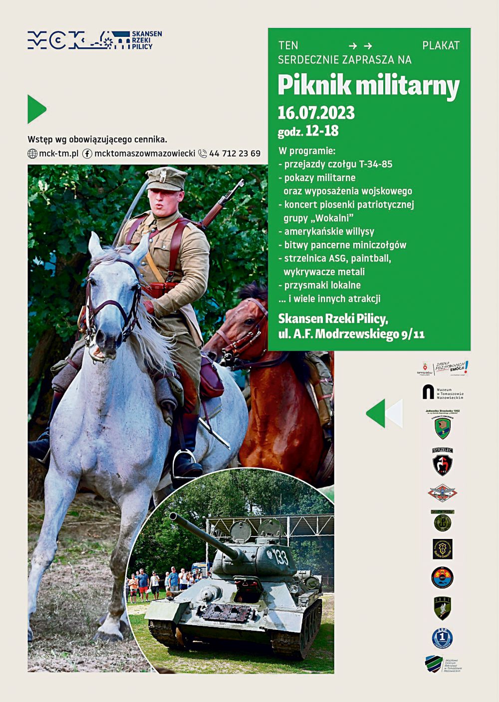 16 lipca w trakcie pikniku można będzie zapoznać się z różnymi aspektami sztuki wojennej, począwszy od okresu drugiej wojny światowej do czasów współczesnych. Do wydarzeń z września 1939 r. nawiązywać będą rekonstruktorzy, ułani (pokaz jazdy konnej i wyposażenia) oraz Korpus Ochrony Pogranicza w historycznym umundurowaniu. Do obejrzenia jest także wystawa o majorze Henryku Dobrzańskim oraz amerykańskie samochody wojskowe willysy.
