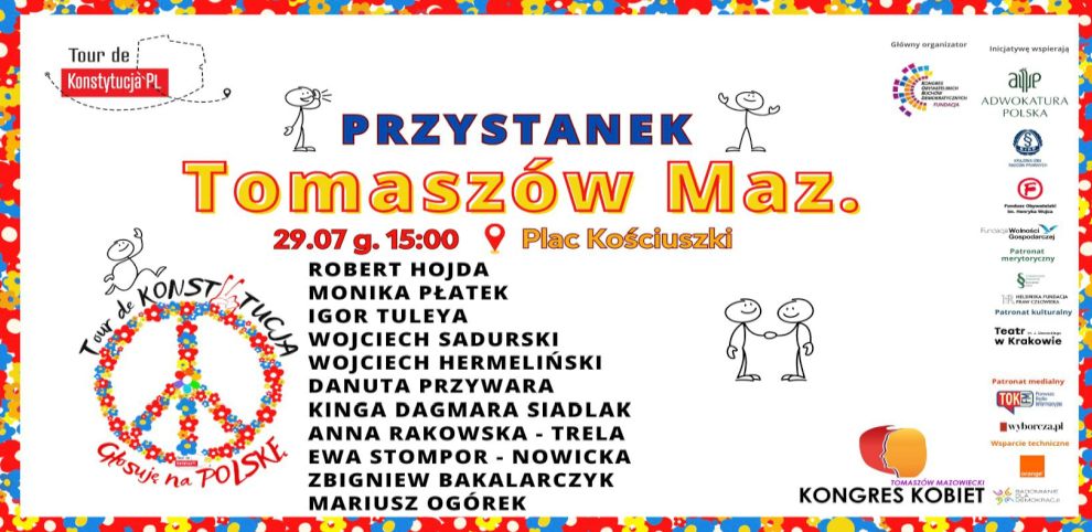 Już po raz kolejny do Tomaszowa zawita akcja pn." Tour de Konstytucja, będąca częścią III edycji ogólnopolskiej trasy wydarzenia. Przyjadą znane osoby ze świata nauki, sądownictwa i działacze społeczni.