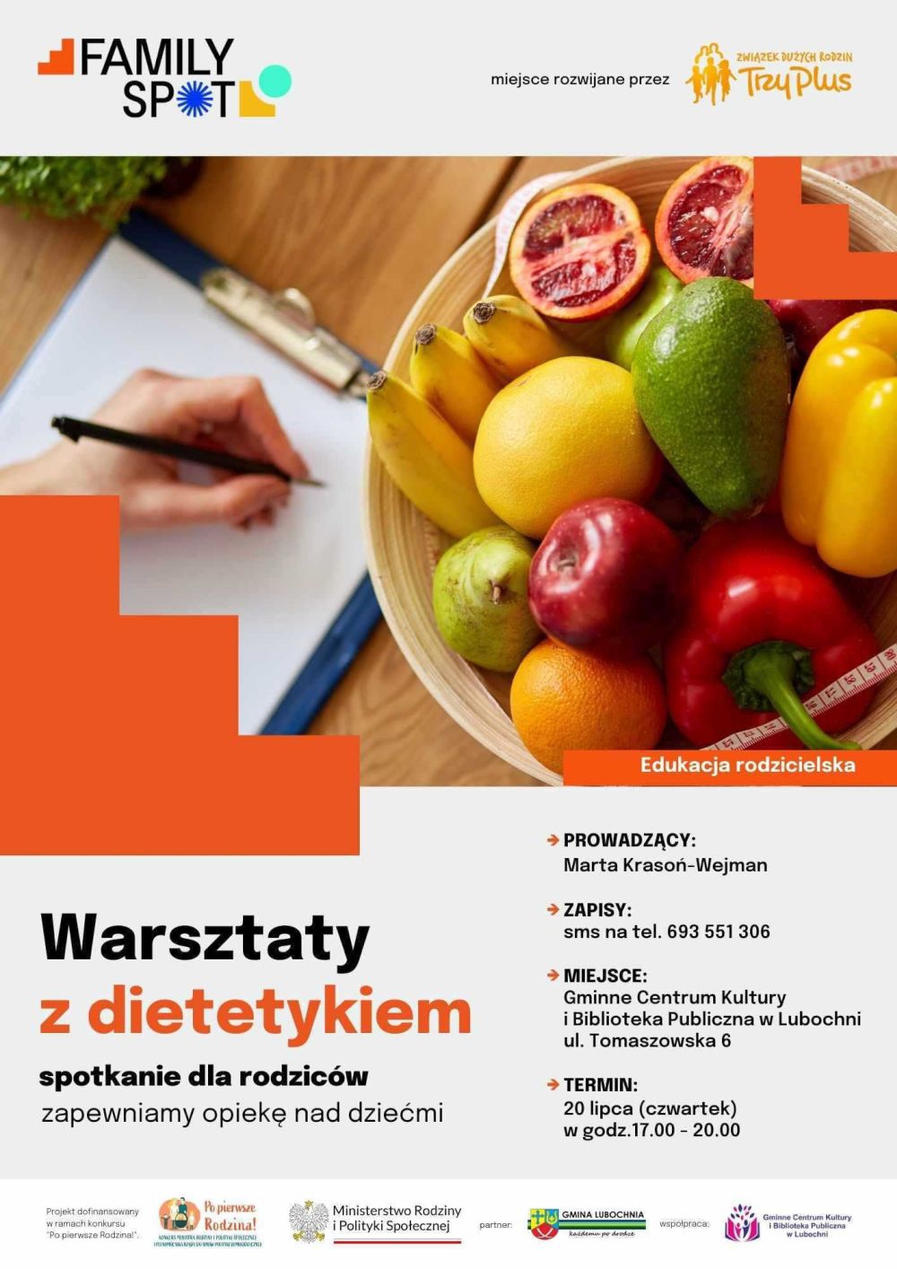 Już dziś - w czwartek, 20 lipca na godz. 17.00 zaprasza na nie lubocheński Family Spot - Gminne Centrum Kultury i Biblioteka Publiczna w Lubochni. Rodzice są jak najbardziej mile widziani z dziećmi, którym na czas spotkania zapewniona zostanie opieka. Zapisy przyjmowane są za pośrednictwem SMS pod numer tel. 693-551-306.