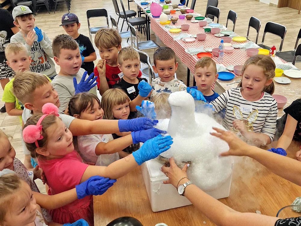 Wakacyjnie dzieje się też w Gminnym Domu Kultury w Wiadernie (na zdjęciu). Zajęcia odbywają się na terenie tej placówki oraz w podległych mu świetlicach wiejskich. Był m.in. cykl zajęć, warsztatów artystycznych i doświadczeń chemicznych przeprowadzonych przy współpracy z LuxParty Kids. Uczestnicy akcji wakacyjnej mieli możliwość wzięcia udziału w zajęciach m.in. z malowania różnymi technikami, zabawach taneczno-ruchowych, robienia leśnych dekoracji czy projektowania koszulek.