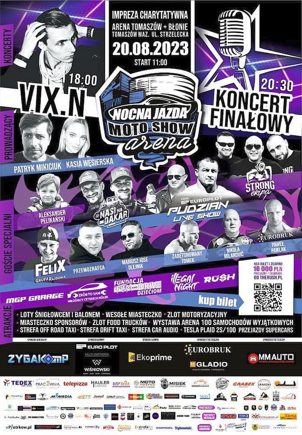 - to wszystko i jeszcze więcej już w niedzielę, 20 sierpnia od godz. 11.00 na tomaszowskich błoniach podczas wydarzenia pn. "Nocna Jazda Moto Show Arena".