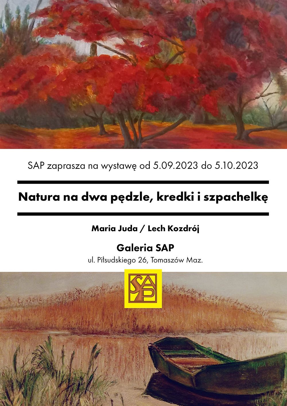Z relacją fotograficzną z pleneru można zapoznać się na profilu SAP na Facebooku. W galerii Stowarzyszenia w. al. marsz. J. Piłsudskiego 26 natomiast już od wtorku, 5 września czynna jest wystawa zatytułowana "Natura na dwa pędzle, kredki i szpachelkę". Swoje prace prezentują na niej Maria Juda i Lech Kozdrój. Ekspozycja dostępna będzie do 5 października w godzinach otwarcia galerii (wtorki i piątki od 10.00 do 13.00 oraz w czwartki od 14.00 do 17.00).