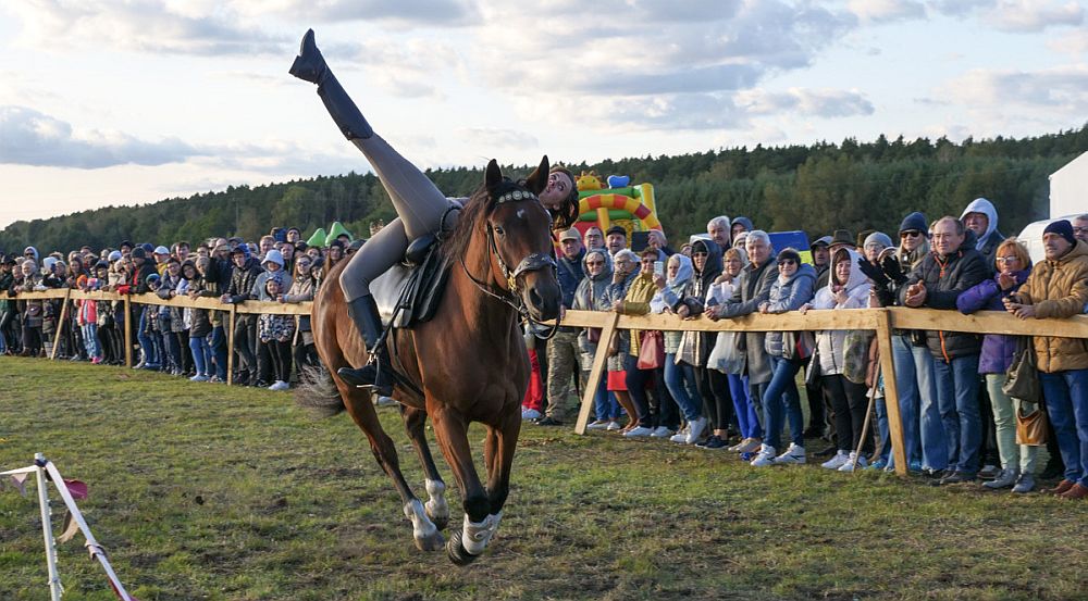- Nowością w tym roku były występy Opolskiej Grupy Historycznej - mówi P. Szczepaniak. Trzeba przyznać, że robiło to wrażenie - były pokazy walk tatarskich, w dawnych strojach i z dawną bronią. Były walki na miecze, skoki przez ludzi itp. Swoje umiejętności ułańskie i tradycje, jak co roku, prezentowali też członkowie Stowarzyszenia im. Oddziału Wydzielonego Wojska Polskiego mjr. Hubala z Poświętnego. Nie zabrakło grupy bardzo zżytej już ze Spalskim Hubertusem Jeździeckim, czyli ekipy Pawła Apolinarskiego. To, co robią oni na koniach, to mistrzostwo w każdym calu. Pokazali kaskaderkę konną, woltyżerkę. To dyscyplina jeździecka, w której zawodnik lub grupa zawodników wykonuje zróżnicowane ćwiczenia gimnastyczne i akrobatyczne na galopującym, kłusującym lub stępującym koniu, prowadzonym na lonży. Grupa Pawła Apolinarskiego dwa razy wystąpiła przed publicznością i wywołała jej aplauz. jej członkowie występują też w znanych filmach historycznych. Na koncie mają znane seriale. Kaskaderzy z Apolinarski Group pojawili się m.in. na planie drugiej serii głośnego serialu "Barbarzyńcy" dostępnego na platformie Netflix.