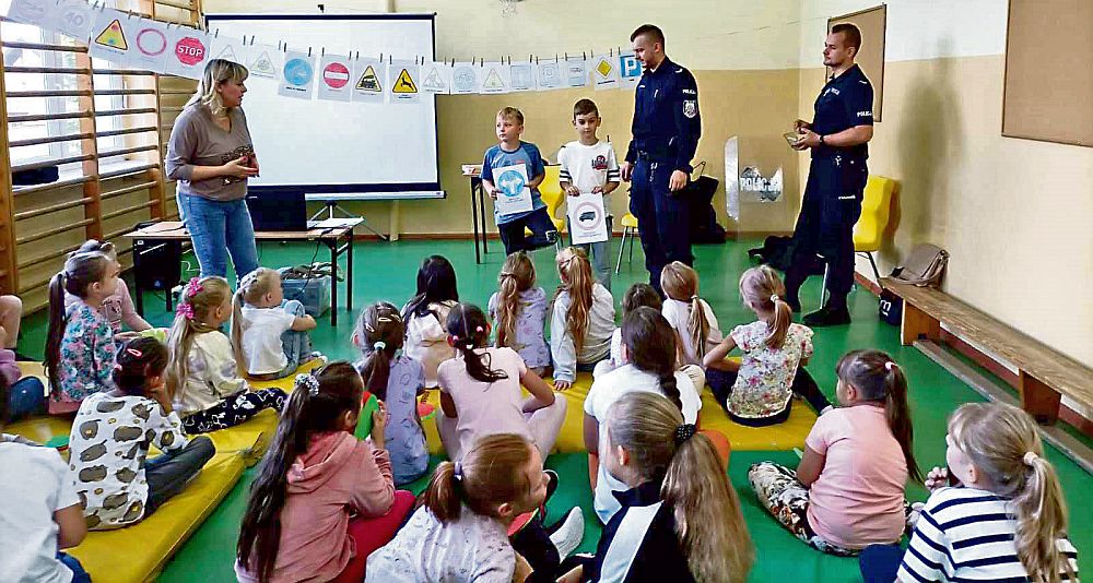 Agnieszka Bojanowska, psycholożka z SP nr 6, poprowadziła zabawy, podczas których uczniowie poprzez uniesienie zielonego lub czerwonego światła odpowiadali na pytania dotyczące ogólnych zasad poruszania się po drodze, skakali przez linię - wybierając właściwe zachowania w stosunku do obcych oraz w kontaktach w Internecie. Dzieci obejrzały także film o numerach alarmowych.
