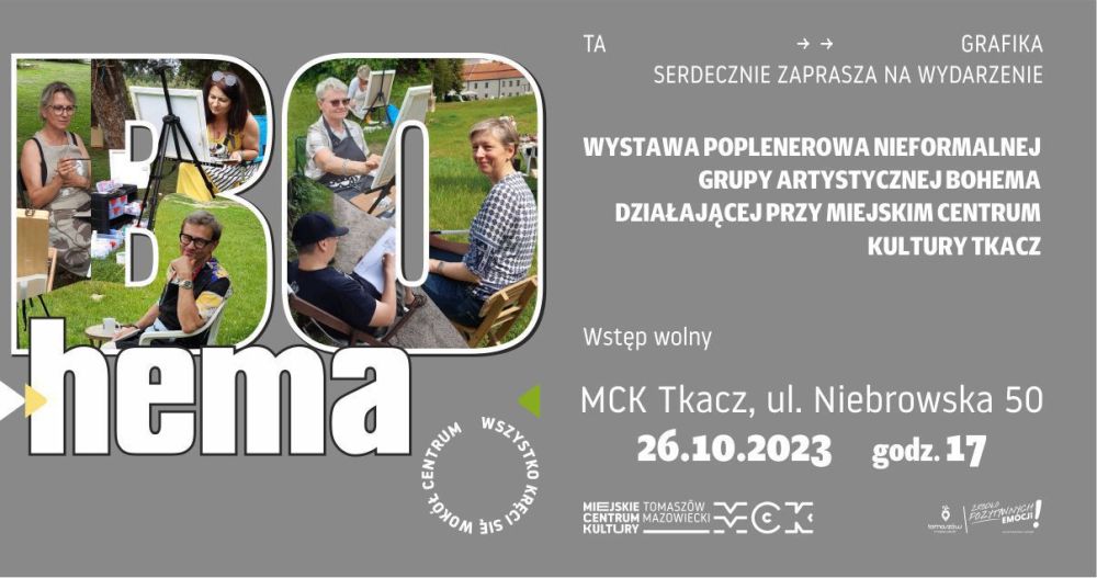 W Miejskim Centrum Kultury Tkacz w czwartek, 26 października o godz. 17 odbędzie się wernisaż malarstwa nieformalnej grupy artystycznej Bohema działającej w MCK pod kierunkiem artysty plastyka Mirosława Bernackiego. Wystawione przez autorów obrazy będzie można zakupić i w ten sposób wesprzeć jedną z uczestniczek zajęć, która zmaga się z chorobą nowotworową.