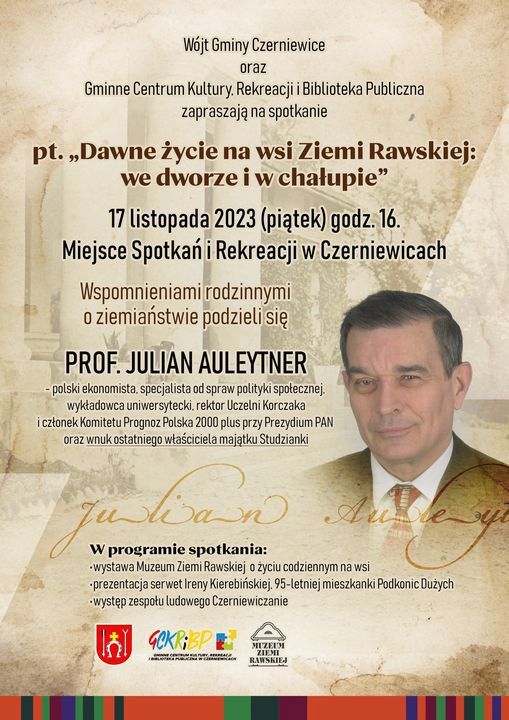 Jest też wnukiem ostatniego dziedzica wsi Studzianki w gminie Czerniewice. I to właśnie w tej roli wystąpi podczas spotkania zatytułowanego "Dawne życie na wsi ziemi rawskiej: we dworze i w chałupie", dzieląc się swoimi rodzinnymi wspomnieniami na temat ziemiaństwa.