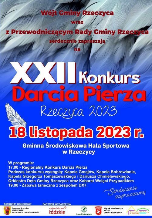XXII Rzeczycki Konkurs Darcia Pierza odbędzie się w sobotę, 18 listopada w Gminnej Środowiskowej Hali Sportowej w Rzeczycy.