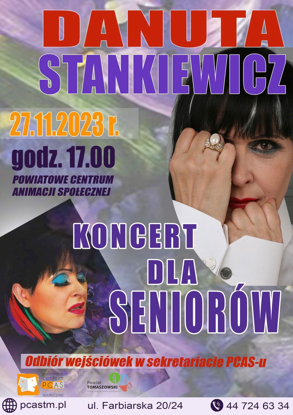 Koncert z okazji Dnia Seniora odbędzie się 27 listopada o godz. 17 w Powiatowym Centrum Animacji Społecznej. Wystąpi Danuta Stankiewicz.
