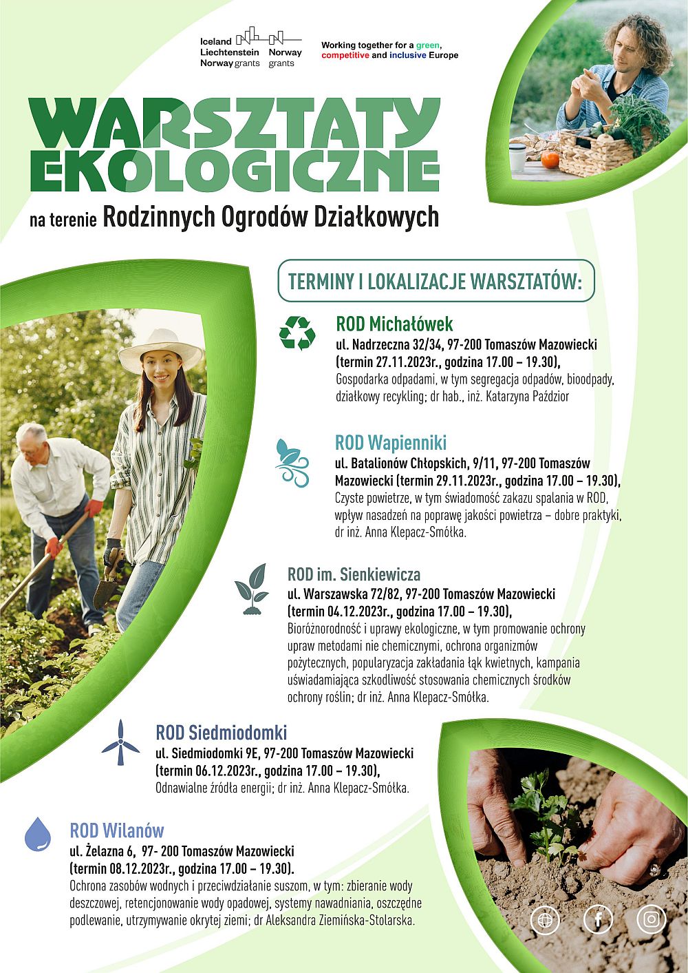 Spotkania odbywać się będą w rodzinnych ogrodach działkowych na terenie miasta, zawsze w godzinach 17.00-19.30. W sumie będzie ich pięć. Pierwsze - w poniedziałek, 27 listopada w ROD Michałówek na temat gospodarki odpadami, w tym ich segregacji i działkowego recyklingu poprowadzi dr hab. inż. Katarzyna Paździor. Na kolejnym - w środę, 29.11 w ROD Wapienniki o dobrych praktykach w dbaniu o czystość powietrza (np. o wpływie nasadzeń na poprawę jego jakości) opowie dr inż. Anna Klepacz-Smółka. Ona także mówić będzie 4 grudnia w ROD im. H. Sienkiewicza m.in. o ekologicznych uprawach, łąkach kwietnych i ochronie organizmów pożytecznych, zaś 6.12 w ROD Siedmiodomki - o odnawialnych źródłach energii. Z kolei tematem warsztatów 8.12. w ROD Wilanów, prowadzonych przez dr Aleksandrę Ziemińską-Stolarską, będzie woda, ochrona jej zasobów i retencjonowanie.