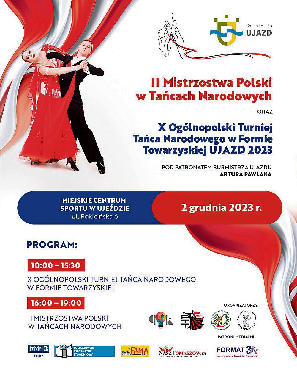 Mistrzostwa Polski w Tańcach Narodowych i Ogólnopolski Turniej Tańca Narodowego w Formie Towarzyskiej odbędą się w sobotę, 2 grudnia w godz. 10-19 w Miejskim Centrum Sportu w Ujeździe. Można będzie podziwiać popisy najlepszych tancerzy.