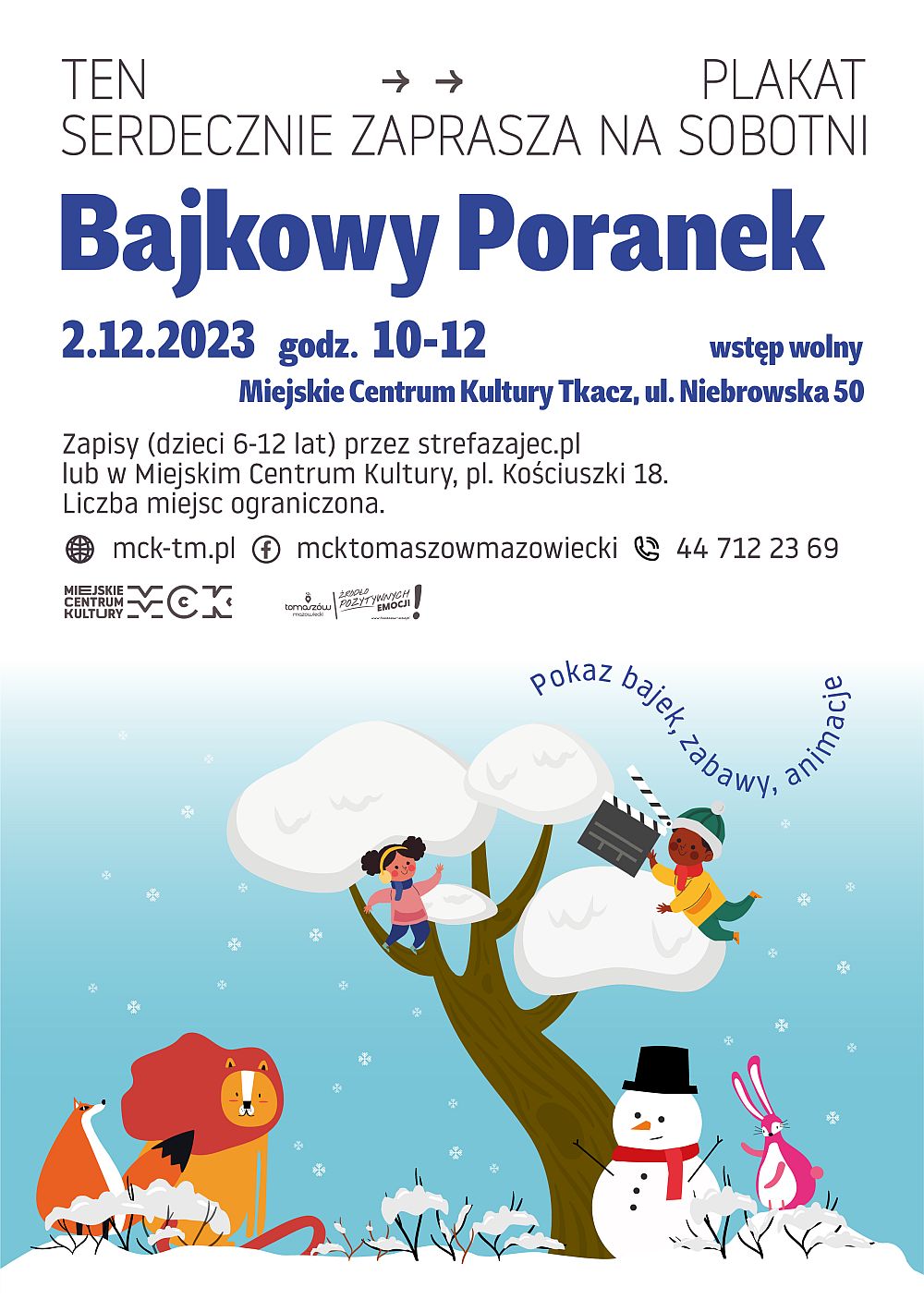 Po raz ostatni w tym roku kalendarzowym, 2 grudnia organizuje "Bajkowy poranek" - pokaz filmowy poprzedzony miniwarsztatami, zabawami i animacjami.