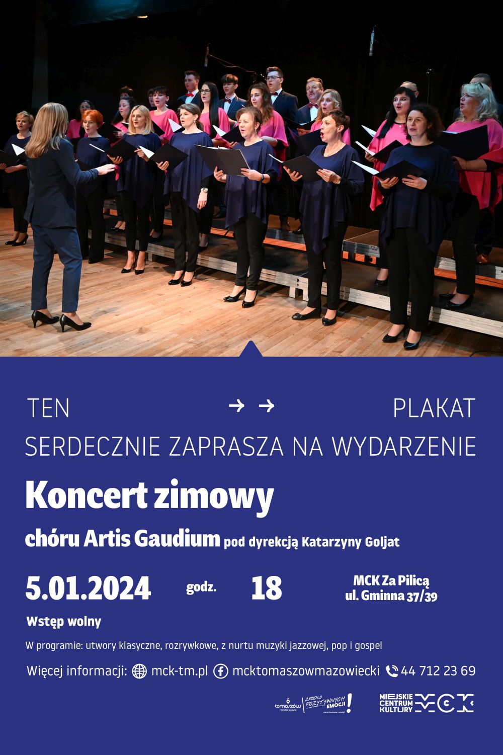 Ponownie zadba o to chór Artis Gaudium. Tym razem wokaliści pod dyrekcją Katarzyny Goljat wystąpią ze swoim "Koncertem zimowym" w piątek, 5 stycznia w Miejskim Centrum Kultury w Tomaszowie Mazowieckim - filii Za Pilicą przy ul. Gminnej 37/39. - W programie będzie można usłyszeć kompozycje polskich autorów i światowe przeboje. Zarówno utwory klasyczne, jak również rozrywkowe, z nurtu muzyki jazzowej, pop czy gospel - przypomina Marzanna Majewska z MCK.