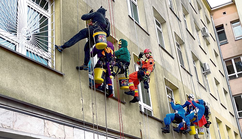 - Przebieramy się w stroje superbohaterów i zjeżdżamy na linach do okien - mówi Rafał Tylak z Łodzi, jeden z organizatorów akcji w Tomaszowie. - Myjemy te okna, a przy tym przede wszystkim nawiązujemy interakcje z dziećmi. Staramy się chociaż przez chwilę odmienić im tę szarą codzienność pobytu w szpitalu, trochę podkolorować. To czwarta edycja naszej akcji. Od ubiegłej niedzieli codziennie odwiedzamy po dwa takie ośrodki.