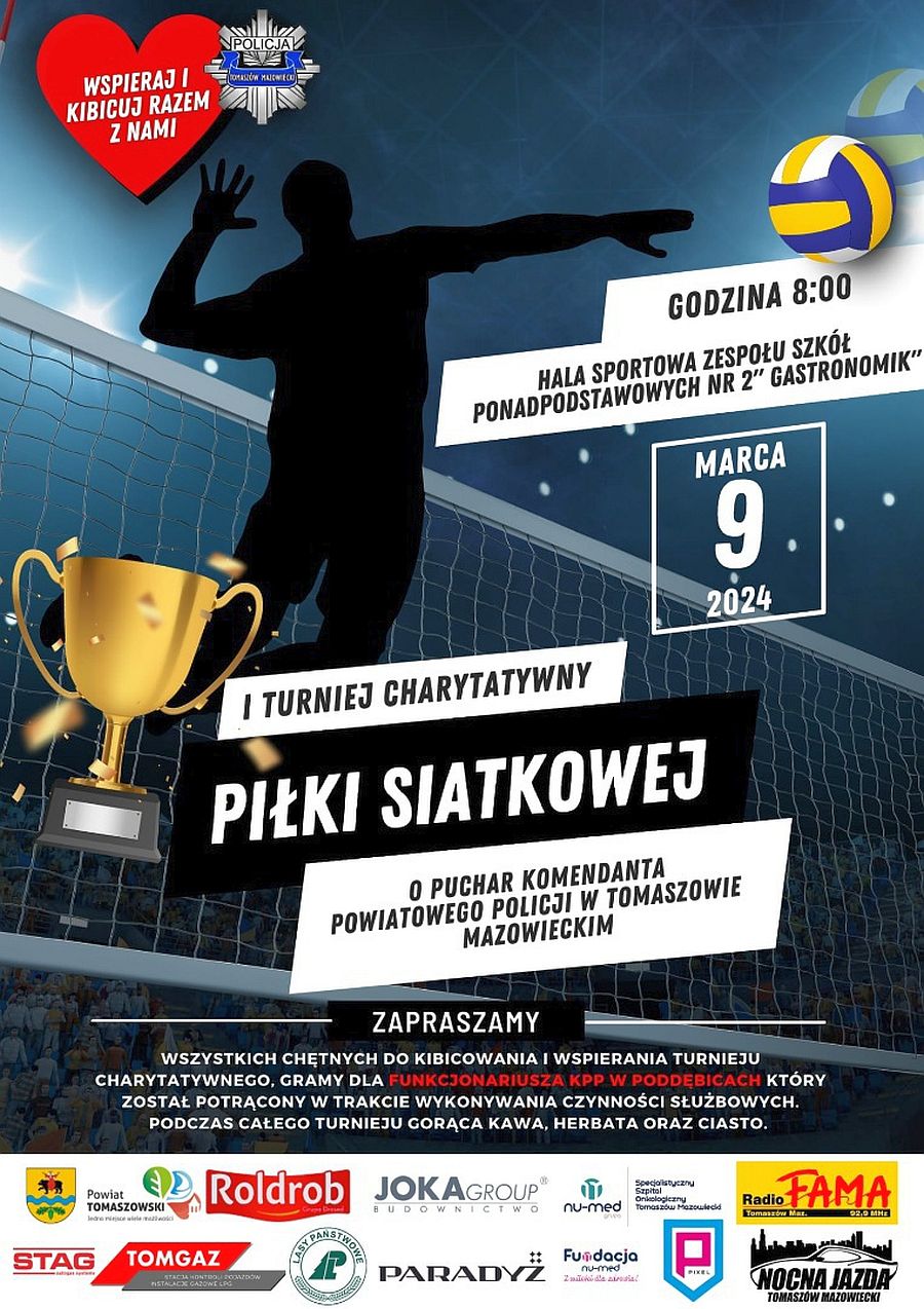 W sobotę, 9 marca w hali ZSP nr 2 zostanie rozegrany turniej piłki siatkowej służb mundurowych, podczas którego będzie prowadzona zbiórka na rehabilitację i leczenie mł. asp. Krzysztofa Sobieraja (policjanta z Poddębic), który na początku br. uległ wypadkowi.