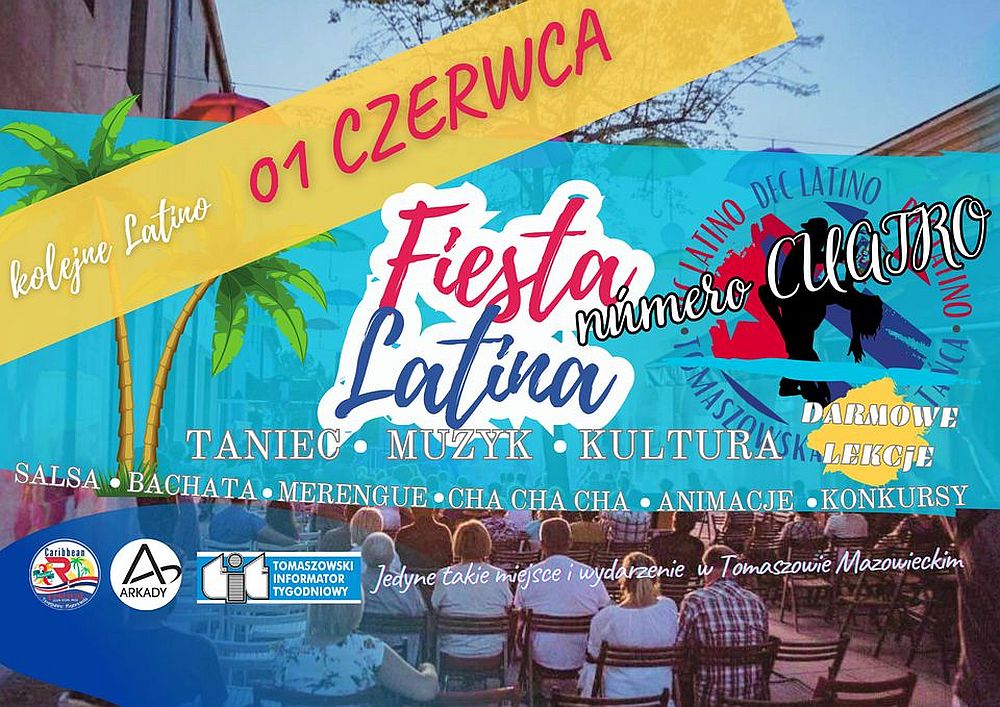 Ze szkołą tańca karaibskiego DFC Latino uczymy się nie tylko tańca, muzyki i kultury Kuby, Dominikany i Kolumbii, ale również języka hiszpańskiego.Odliczamy zatem – czwarta w tym sezonie Fiesta Latina już w nadchodzący weekend. Tym razem w sobotę, 1 czerwca. Za to niezmiennie przy Galerii Sztuki Arkady i z rozgrzewkową lekcją tańca, a następnie animacjami i konkursami. Wszystko to w godzinach od 18.00 do 22.00 i pod naszym, Tomaszowskiego Informatora Tygodniowego, patronatem.