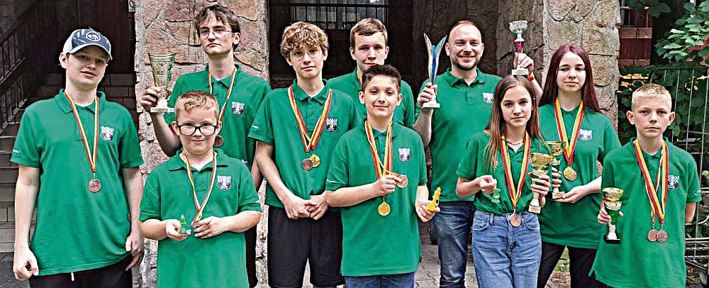 Na zdjęciu: Reprezentacja szachistów z Żelechlinka prezentuje zdobyte medale i puchary na wojewódzkim turnieju w Sulejowie