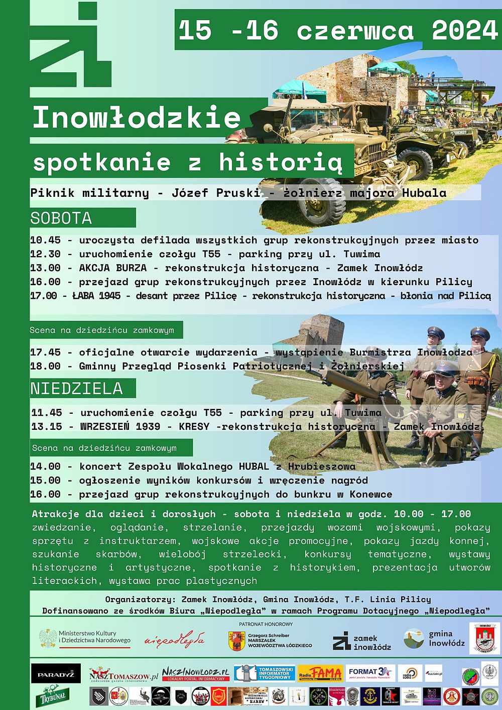 Nie jest to jednak wszystko, co wypełnić ma weekendowe spotkanie z historią. W oba dni w godzinach od 10.00 do 17.00 zaplanowano wiele różnorodnych atrakcji i dla dzieci, i dla dorosłych. Wśród nich znaleźć się mają między innymi: pokazy sprzętu z instruktażem oraz jazdy konnej, wielobój strzelecki, przejazdy pojazdami wojskowymi czy szukanie skarbów. Przewidziano również spotkanie z historykiem i konkursy tematyczne, a i to jeszcze nie wszystko, co przewidzieli dla uczestników wydarzenia jego organizatorzy: Zamek Inowłódz, władze gminy i Towarzystwo Fortyfikacyjne Linia Pilicy. Tomaszowski Informator Tygodniowy jest jednym z patronów medialnych imprezy.