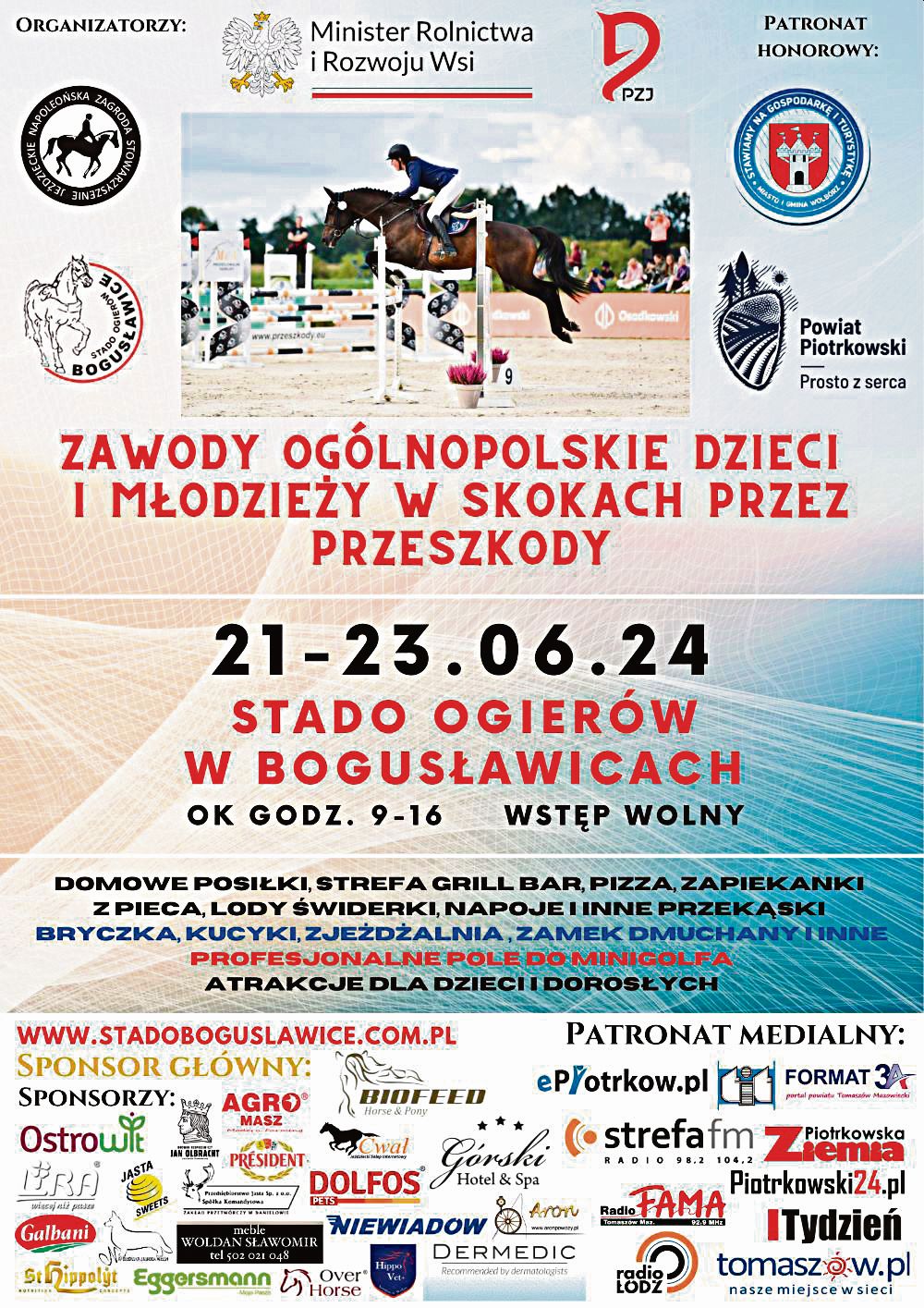 Najbliższy weekend, 21–23 czerwca, w Stadzie Ogierów w Bogusławicach pod Wolborzem upłynie pod znakiem Zawodów Ogólnopolskich Dzieci i Młodzieży w Skokach przez Przeszkody.