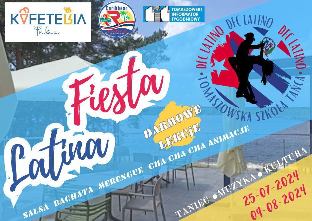 Zapraszamy na gorące wieczory pełne muzyki i tańca! Kafeteria Inka i DFC Latino Szkoła Tańca organizują "Latino na Tarasie" – dwa ekscytujące wydarzenia 25 lipca i 9 sierpnia, w godzinach 18.00–22.00, ul. Klonowa 1, Smardzewice.
