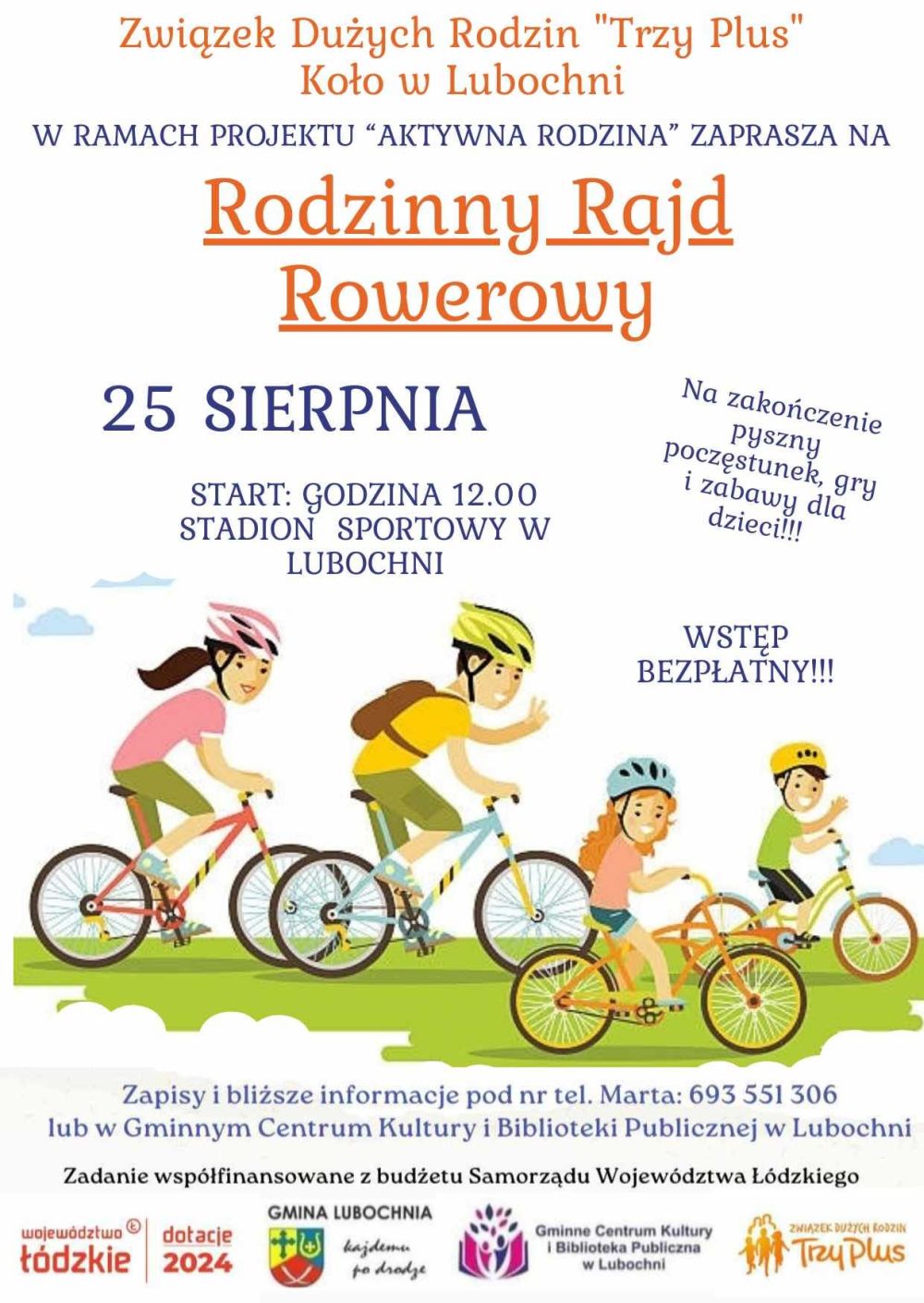 Lubocheńskie koło Związku Dużych Rodzin "Trzy Plus" po raz szósty organizuje Rodzinny Rajd Rowerowy.