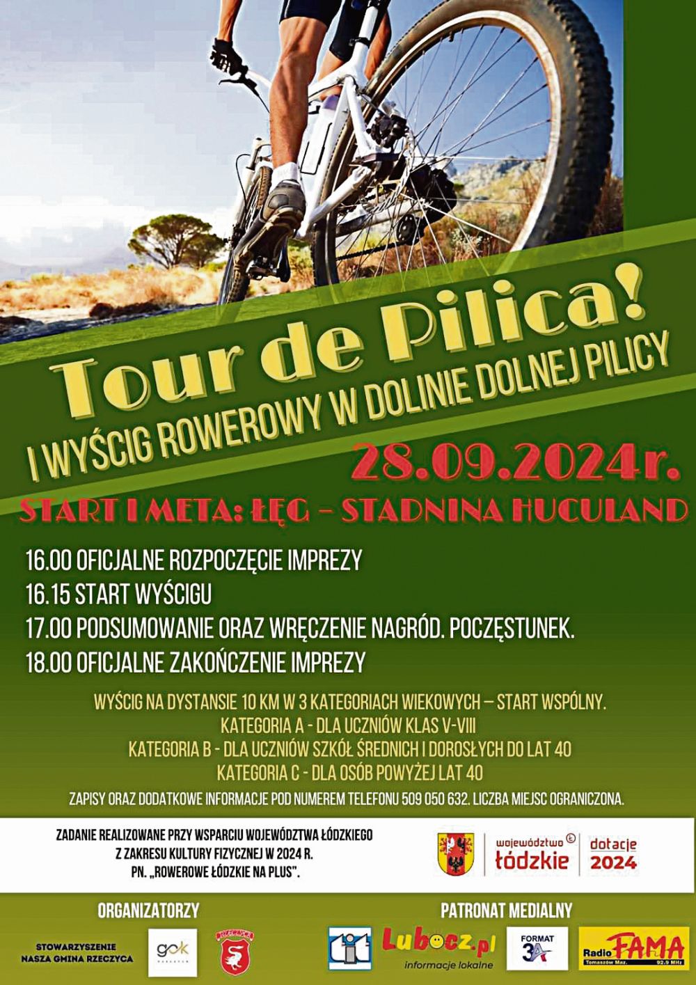 "Tour de Pilica!" organizowany jest wspólnie przez Stowarzyszenie Nasza Gmina Rzeczyca, Gminny Ośrodek Kultury w Rzeczycy i miejscowy Urząd Gminy. Jest (o czym informowaliśmy już na naszych łamach) jednym z zadań realizowanych z dofinansowaniem z budżetu Samorządu Województwa Łódzkiego w ramach tegorocznej edycji programu pod nazwą "Rowerowe Łódzkie na Plus". Redakcja Tomaszowskiego Informatora Tygodniowego jest jednym z patronów medialnych wydarzenia.