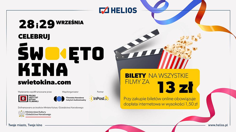 Tegoroczna edycja wydarzenia zaplanowana została na najbliższe sobotę i niedzielę, 28 i 29 września. Bilety na wszystkie seanse 2D w tych dniach dostępne są w specjalnej cenie 13 złotych (plus ewentualna opłata internetowa w przypadku zakupu online). W akcji bierze udział ponad 260 kin w całej Polsce, zaś wśród nich tomaszowski Helios (pełna lista dostępna jest na stronie internetowej pod adresem: www.swietokina.com). – Podczas tego weekendu na ekranach naszych kin znajdą się przedpremierowe seanse wyczekiwanych tytułów: "Kulej. Dwie strony medalu" oraz "Simona Kossak", jak również cieszące się największym zainteresowaniem w bieżącym repertuarze: "Beetlejuice Beetlejuice", "Transformers. Początek", "Nie mów zła" czy "Drużyna A(A)" – zapowiada Katarzyna Wasilewska, dyrektorka Heliosa. Jak wyjaśnia, wydarzenie ma na celu propagowanie kultury chodzenia do kina, przekonanie nieprzekonanych do dużego ekranu oraz promocję filmów. Na pewno w jakimś stopniu się to udaje. – Ubiegłoroczna edycja zgromadziła w całym kraju ponad pół miliona widzów. Organizatorzy liczą, że w tym roku będzie ich jeszcze więcej. Serdecznie zapraszam i... do zobaczenia w kinie! – zachęca pani Katarzyna. Także do odwiedzenia strony: www.helios.pl/aktualnosc/swietokina, gdzie znaleźć można szczegółowe informacje na temat akcji.