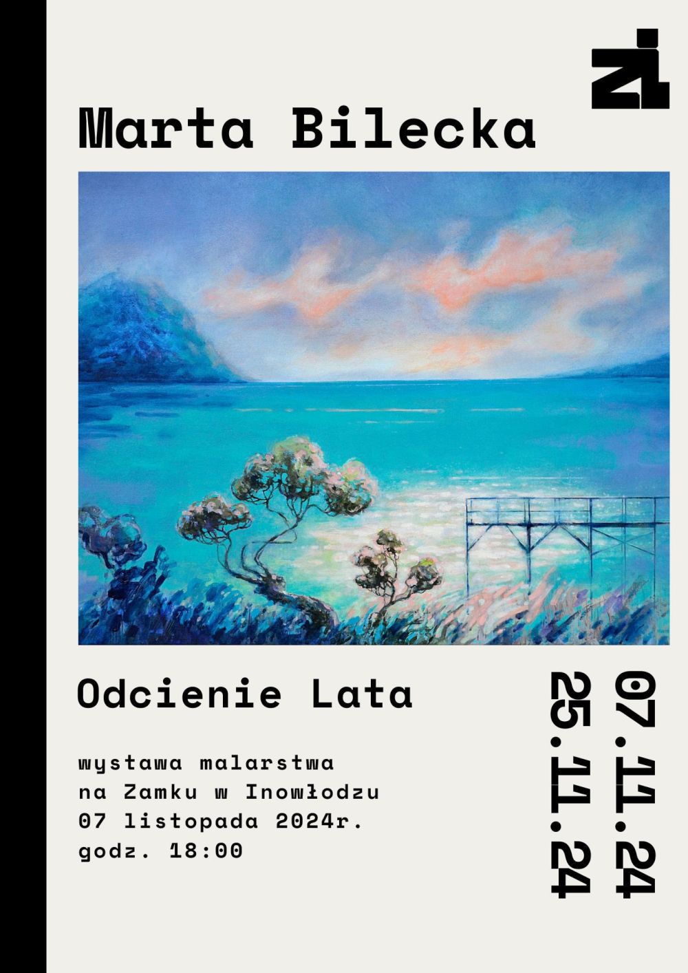 "Odcienie lata" to tytuł wystawy i wernisażu prac Marty Bileckiej, które można będzie oglądać na Zamku w Inowłodzu. Wernisaż odbędzie się w jego murach 7 listopada o godz. 18.