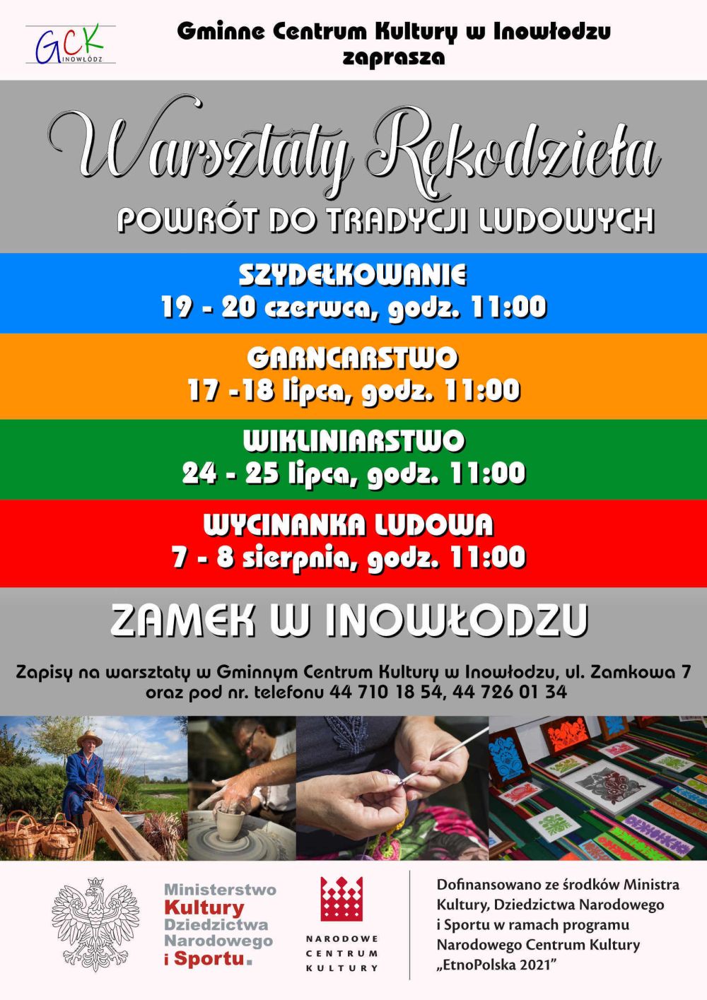 2-dniowych warsztatów z garncarstwa, 2-dniowych warsztatów z wycinanki ludowej, 2-dniowych warsztatów z szydełkowania i 2-dniowych warsztatów z wikliny. Zapisy w GOK w Inowłodzu lub telefonicznie: 44 710 18 54, 44 726 10 34.