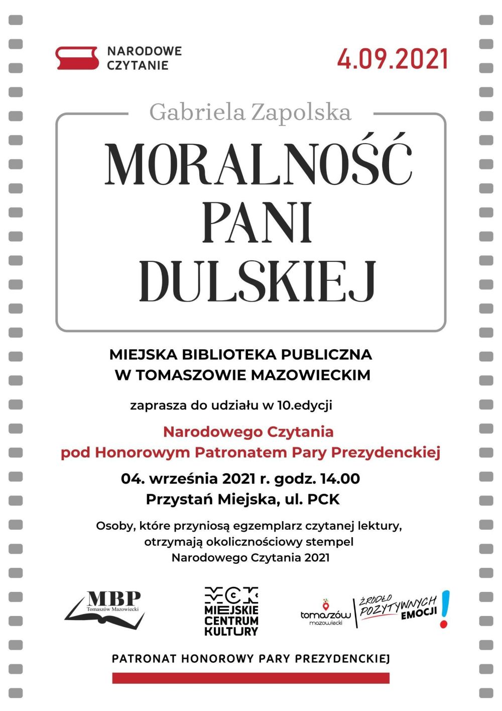 Wspólne czytanie z MBP odbędzie się 4 września o godz. 14 na Przystani Miejskiej przy ul. PCK. Fragmenty utworu przeczytają zaproszeni goście. Ale to nie wszystko. - Po zakończeniu Narodowego Czytania odbędzie się piknik, w czasie którego prowadzona będzie zbiórka publiczna na leczenie Zosi Bigos - informuje Agnieszka Wojciechowska z Działu Gromadzenia, Opracowania i Kontroli Zbiorów MBP.