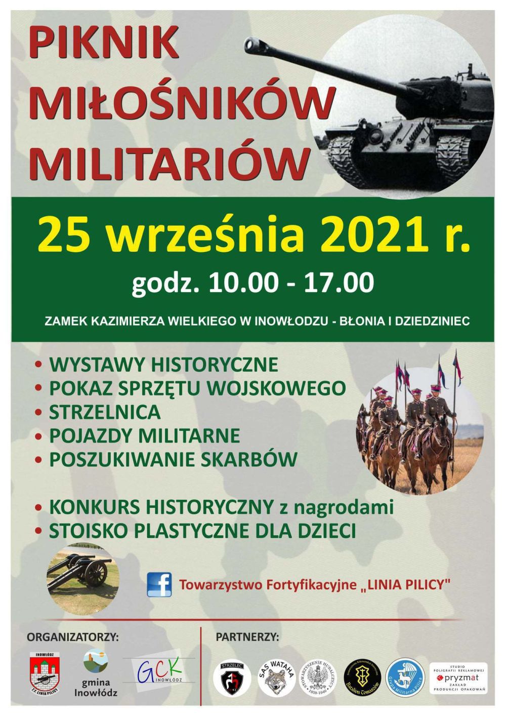 Od godz. 10.00 będzie można oglądać wystawy historyczne, sprzęt wojskowy oraz pojazdy militarne, a także spróbować swoich sił na strzelnicy i w konkursie historycznym. Dla dzieci będą zabawy plastyczne.