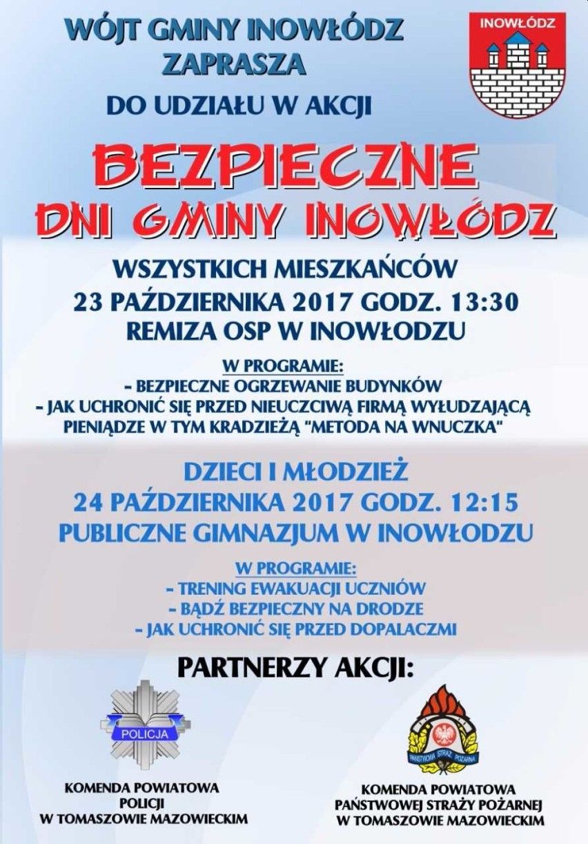 8 i 9 października w Inowłodzu odbędą się Dni Bezpieczeństwa Gminy Inowłódz.