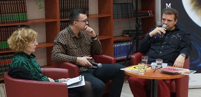 W książnicy wystąpiła z fragmentem powieści Olgi Tokarczuk "Bieguni". Kolejnym punktem wieczoru było spotkanie z tomaszowskimi poetami - Piotrem Gajdą i Tomaszem Bąkiem. Opowiadali o początkach swojej twórczości oraz związkach z biblioteką, jak również przybliżyli swój warsztat poetycki . Można było też wysłuchać wierszy w interpretacji własnej poetów, a następnie zakupić książki ich autorstwa. Noc Bibliotek nie mogła się oczywiście odbyć bez zwiedzania magazynów bibliotecznych. W tym czasie wszyscy mogli też skorzystać z abolicji ogłoszonej przez dyrektora MBP na czas Nocy Bibliotek i oddać przetrzymane książki bez konieczności zapłacenia kary.
