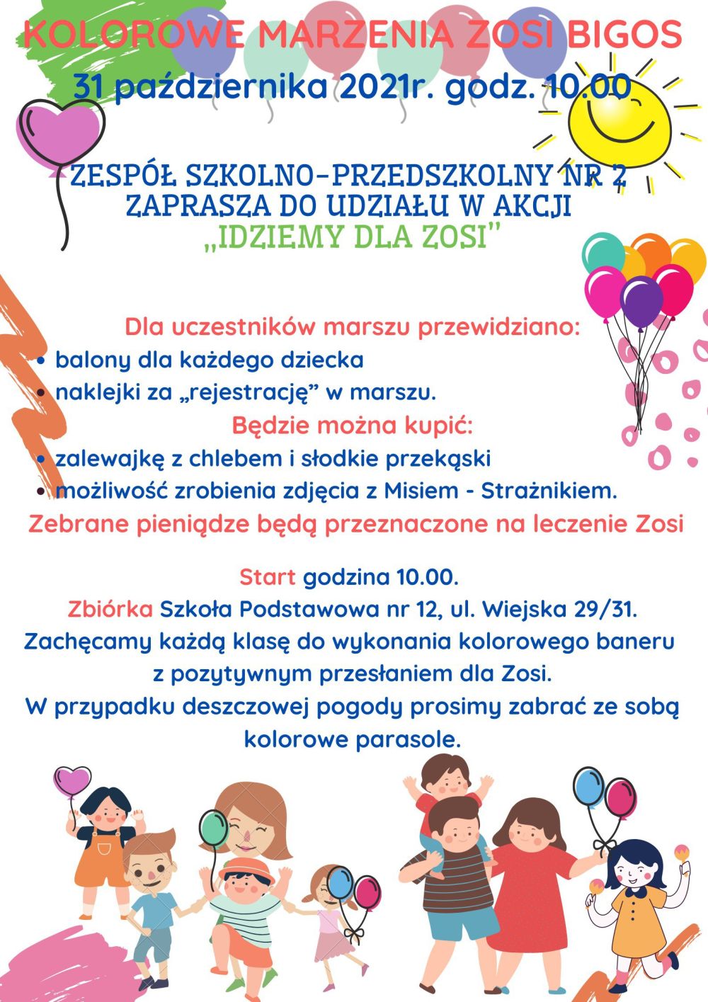 Już w najbliższą niedzielę – 31 października o godz. 10.00 rusza sprzed SP12 otwarty dla wszystkich marsz, z którego całkowity dochód zostanie przekazany na leczenie Zosi.