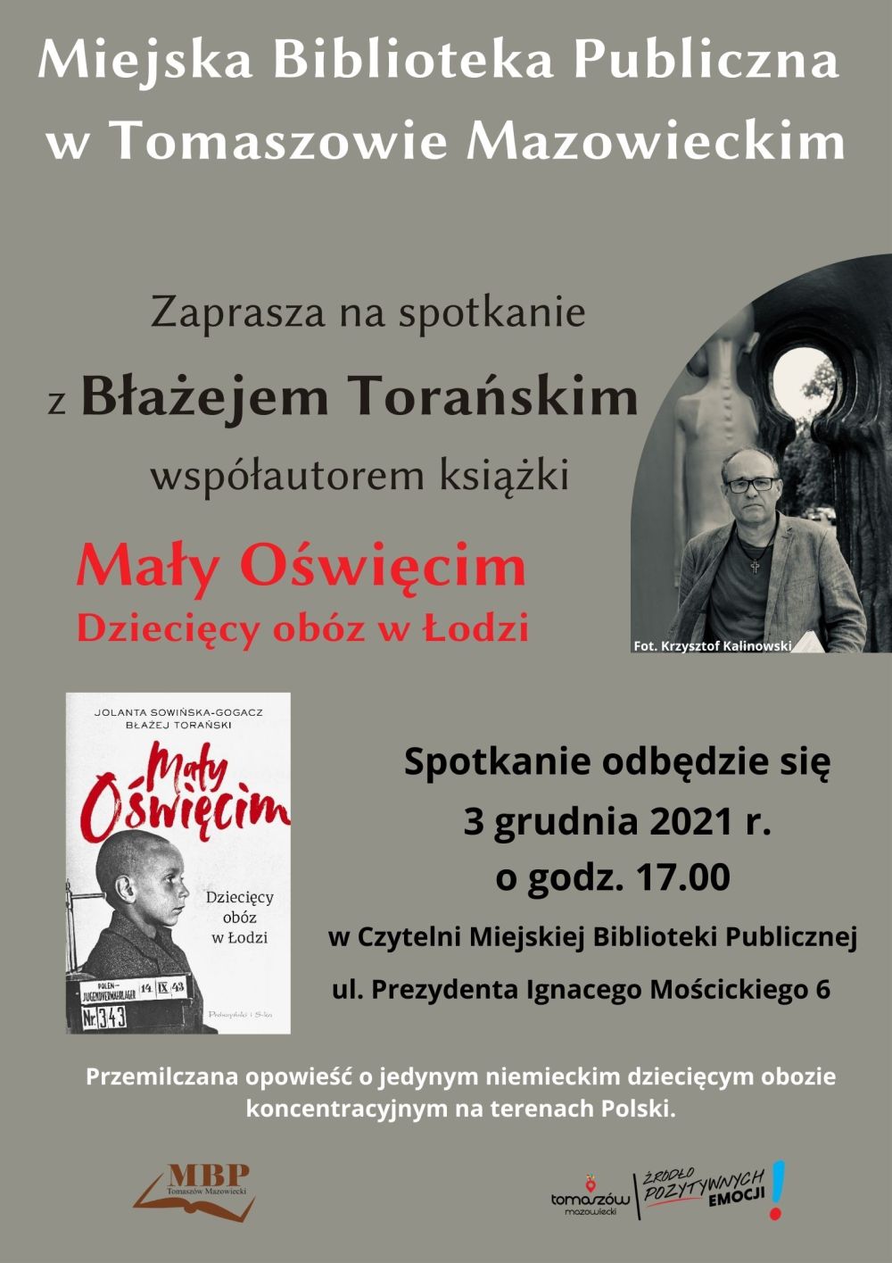 Spotkanie z Błażejem Torańskim, współautorem książki "Mały Oświęcim. Dziecięcy obóz w Łodzi", odbędzie się w piątek, 3 grudnia o godz. 17.00, w Czytelni Miejskiej Biblioteki Publicznej.