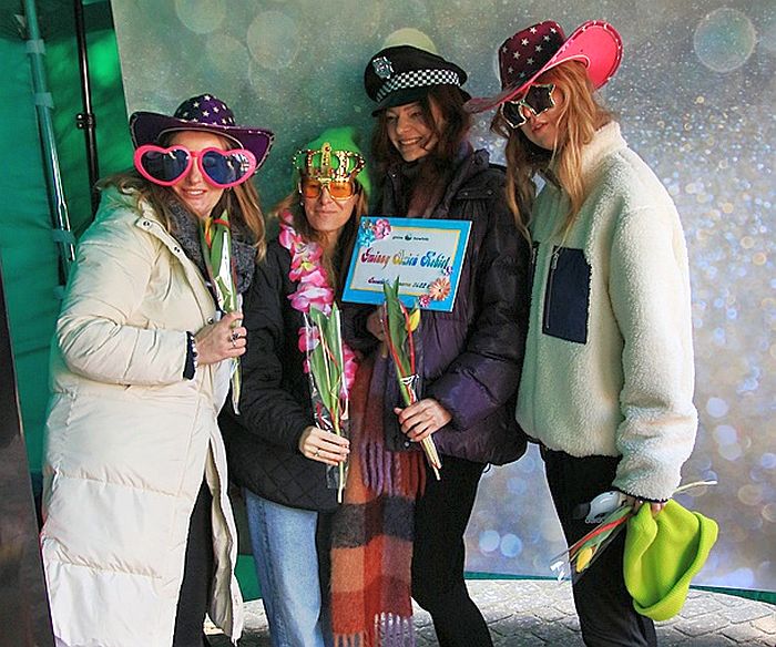 Na placu Kazimierza Wielkiego w Inowłodzu (8 marca) na panie czekały niespodzianki. Była fotobudka, a radni i władze gminy wręczali kwiaty. Była też loteria z nagrodami.