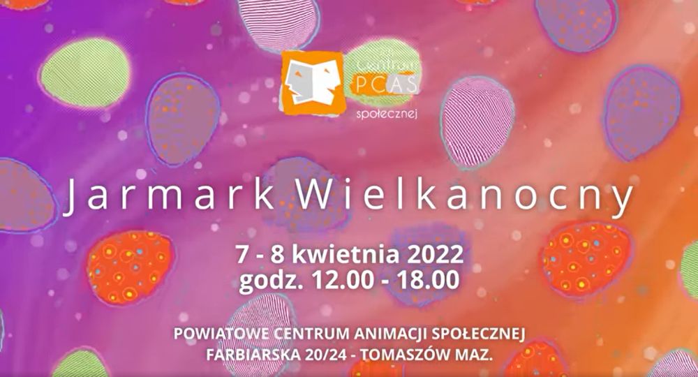 Jarmark wielkanocny w Powiatowym Centrum Animacji Społecznej odbędzie się 7 i 8 kwietnia w godz. 12.00-18.00 przed budynkiem E na terenie placówki.