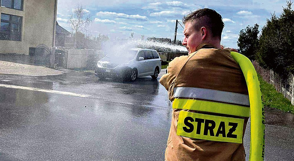 W Wąwale strażacy z miejscowej OSP oblewali wodą przejeżdżające samochody.