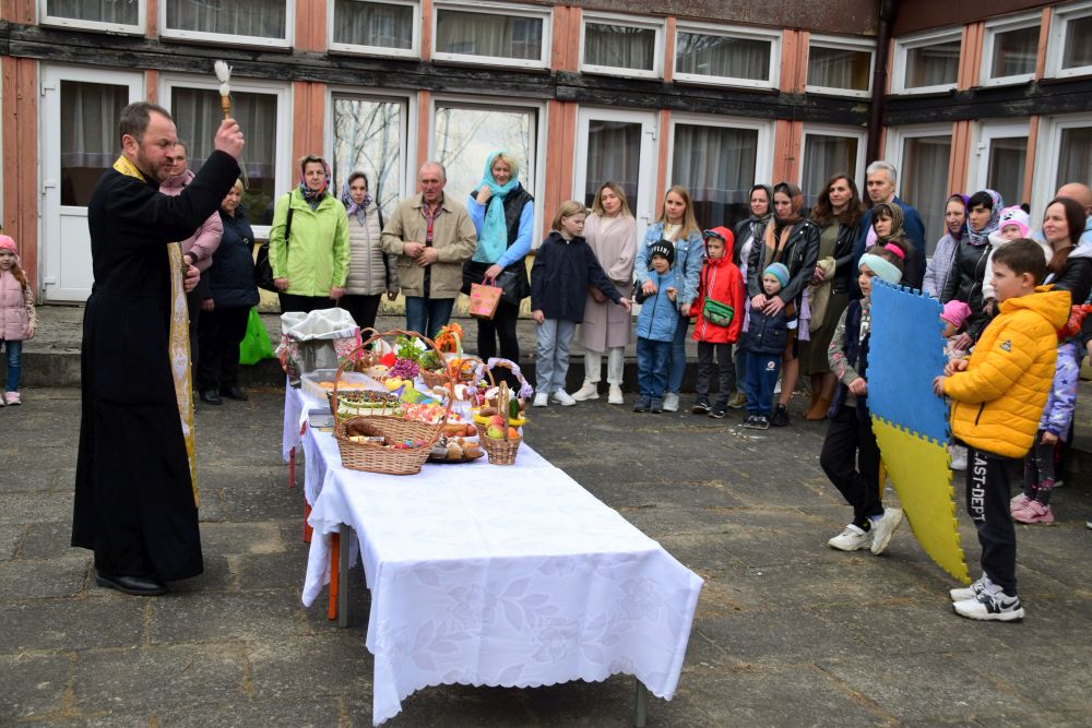 W tym roku prawosławna Wielkanoc odbyła się 24 kwietnia. Poprzedzały je, tak jak u nas, nabożeństwa Wielkiego Czwartku i Wielkiego Piątku, które Ukraińcy z okolic mogli celebrować w parafii prawosławnej w Piotrkowie Tryb. Tam też odbywały się święcenia pokarmów, ale wyznawcy prawosławia z Tomaszowa nie musieli tam jechać, ksiądz z piotrkowskiej parafii w sobotę, 23 kwietnia przyjechał bowiem do nich. Święcenie odbyło się na terenie byłego Przedszkola nr 3 na Niebrowie i na przystani przy ul. PCK, gdzie obecnie mieszkają Ukraińcy przybyli do Tomaszowa po 24 lutego br., kiedy w ich kraju wybuchła wojna. Lokatorzy to głównie kobiety z dziećmi. Już przed godz. 15 przed dawnym przedszkolem na ul. Kombatantów było widać ruch. Do świąt i przyjazdu księdza przygotowywano się, robiąc koszyczki wielkanocne i potrawy. Na podwórzu ustawiono stół, na którym układano pokarmy. Na święcenie przybyły też osoby mieszkające w innych częściach miasta, część z nich dowiedziała się o planowanym święceniu z naszej gazety.