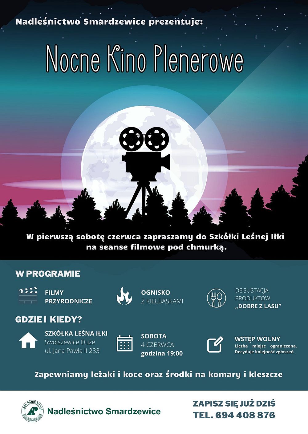 Pierwszy seans odbędzie się już w najbliższą sobotę, 4 czerwca w terenie Szkółki Leśnej Iłki w Swolszewicach Dużych, przy ul. Jana Pawła II 233. Wyświetlonych zostanie 10 filmów o tematyce przyrodniczej. Początek o godz. 19.00, koniec o wschodzie słońca.
