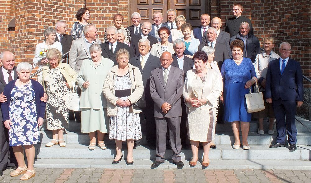 Jubilatów z rodzinami i zaproszonych gości powitali wójt Marian Holak wraz z przewodniczącym samorządu Januszem Trzonkiem i kierowniczką USC Małgorzatą Piwońską, którym towarzyszył proboszcz miejscowej parafii.