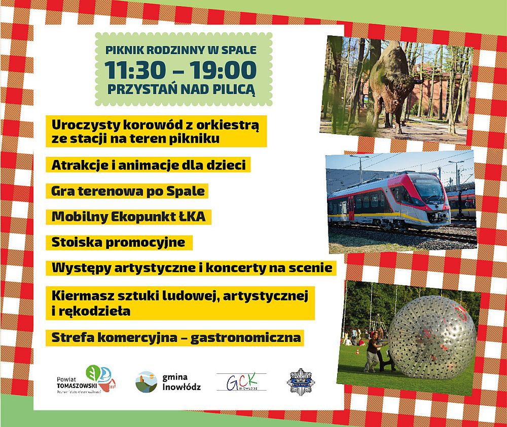Na pikniku nie zabraknie atrakcji dla dzieci. Będzie malowanie twarzy, wata cukrowa, popcorn, zorbing, warsztaty plastyczne i taneczne, bański mydlane, owocorower. Wiele konkursów, turniej siatkówki, gra terenowa - dmuchany tor przeszkód, kolejka szynowa. gra terenowa w Spale i mobilny ekopunkt ŁKA. Nie zabraknie tez koncertów i występów artystycznych na szczenie, będzie kiermasz sztuki ludowej, artystycznej i rękodzieła.