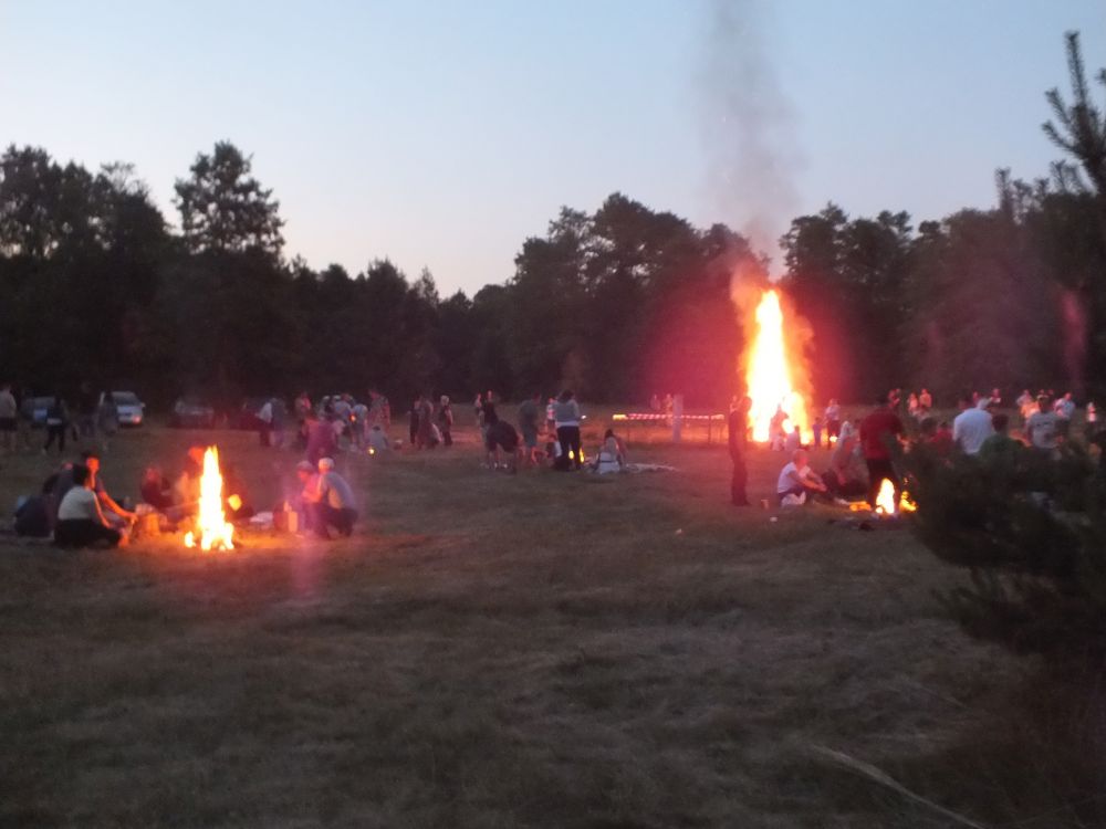 Po powrocie na błonia wójt Marek Kaźmierczyk i sołtys Grotowic Wojciech Pacholczyk podpalili przygotowaną wcześniej ogromną piramidę z drewna. Długie jęzory płomieni buchające w rozgwieżdżone niebo rozświetliły mrok, zachęcając młodzież i dorosłych do zabawy. Wokół ogromnego ogniska uczestnicy nocy świętojańskiej rozpalili ponad dwadzieścia mniejszych, przy których śpiewano, tańczono i biesiadowano w gronie rodziny lub przyjaciół.