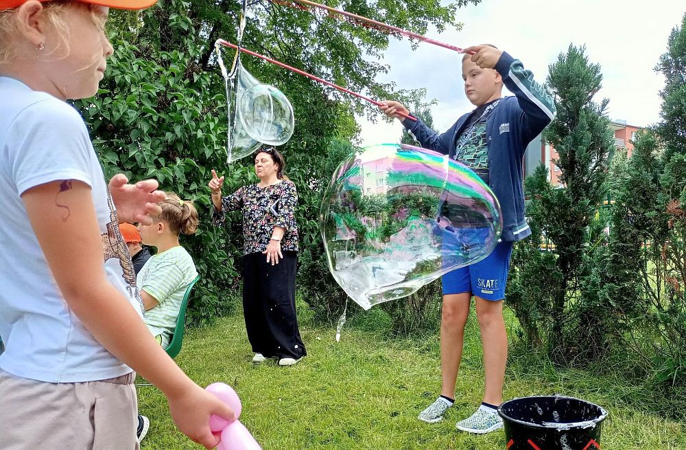 Spotkanie, jak zaznacza Małgorzata Niewiadomska, było uzgodnione ze Spółdzielnią "Przodownik", z którą w podobnych, podwórkowych akcjach PCAS współpracuje. - Nasi animatorzy pojawiają się na różnych podwórkach, by zachęcić lokalną społeczność do wyjścia z czterech ścian, spędzenia czasu w sposób aktywny, zabawny, a często też inspirujący, bo choć akcja skierowana jest do wszystkich - dzieci , młodzieży i dorosłych, to nie ukrywam, że zależy nam głównie na najmłodszych - mówi Dorota Ignasiak, dyrektorka PCAS. W czwartek, 7 lipca dzieci też nie brakowało. Przyszły głównie z mamami, kiedy tylko między blokami rozbrzmiała muzyka. Było dużo gier, zabaw, animacji, wielkich baniek mydlanych, konkurencji sportowych i konkursów, w których można było wygrać drobne upominki.