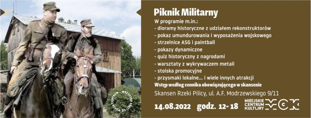 Piknik Militarny to propozycja Skansenu Rzeki Pilicy na niedzielę, 14 sierpnia z okazji przypadającego na dzień później Święta Wojska Polskiego. Ma być sporo, głównie wojskowych i historycznych, atrakcji.
